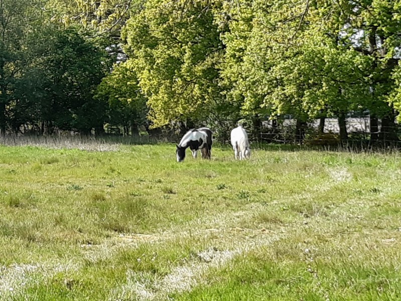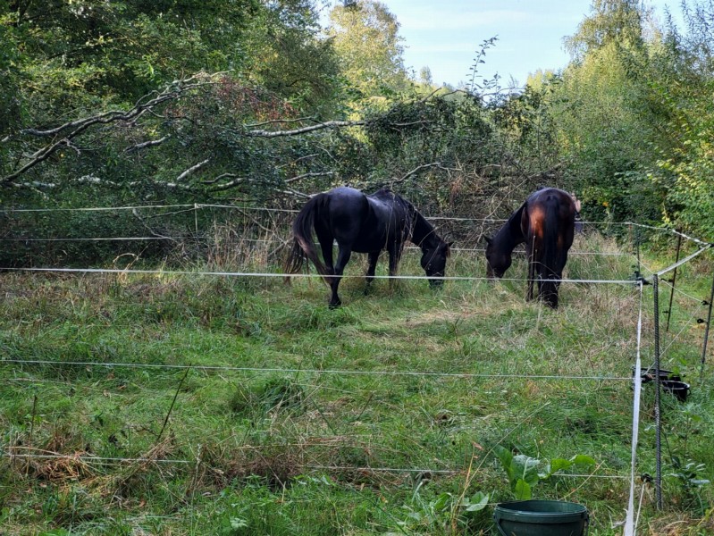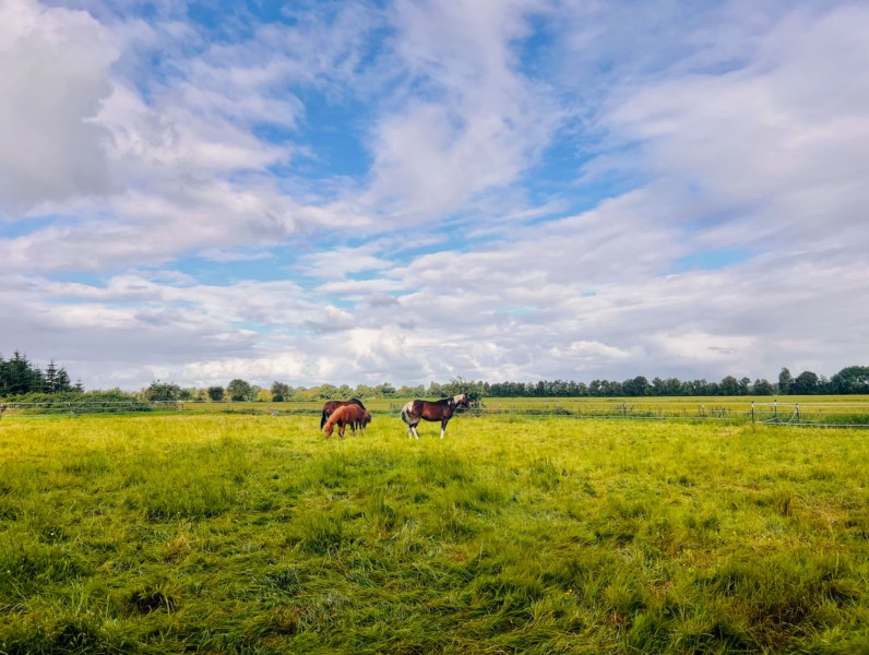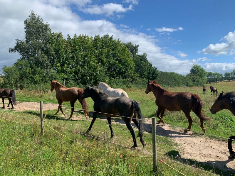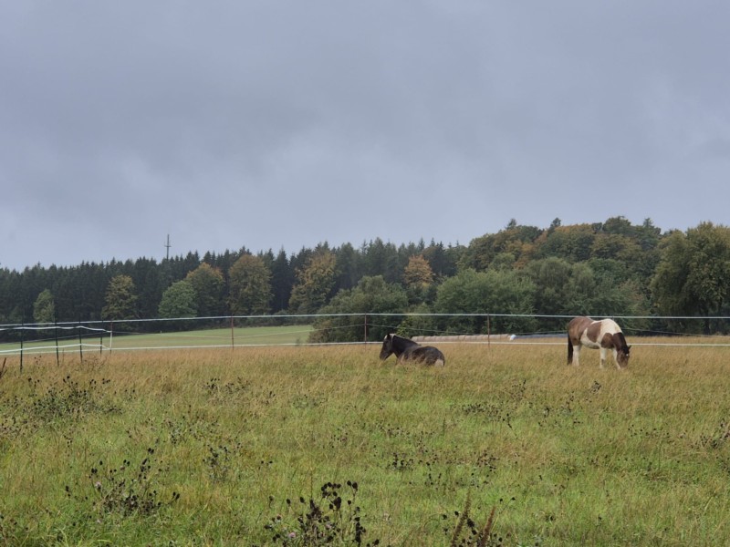 | Bäume, Wiese zum selbst Einzäunen Plätze: 10 | Sitzgelegenheiten im Freien, direkte Sicht zu den Pferden |