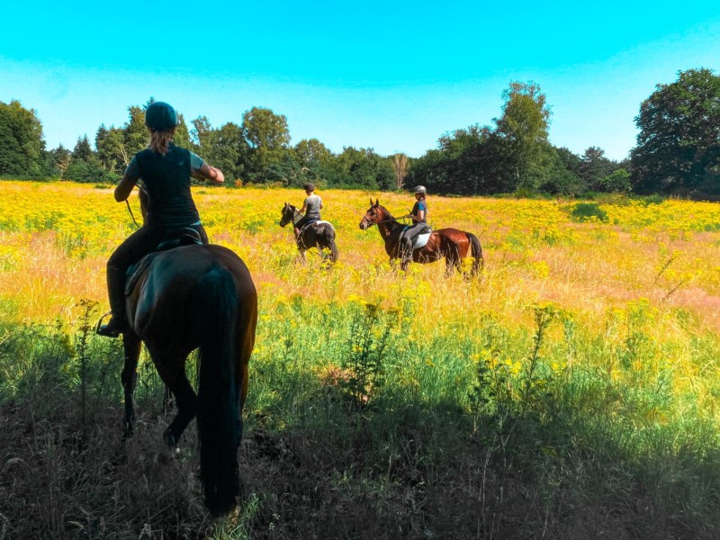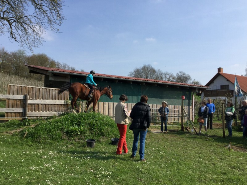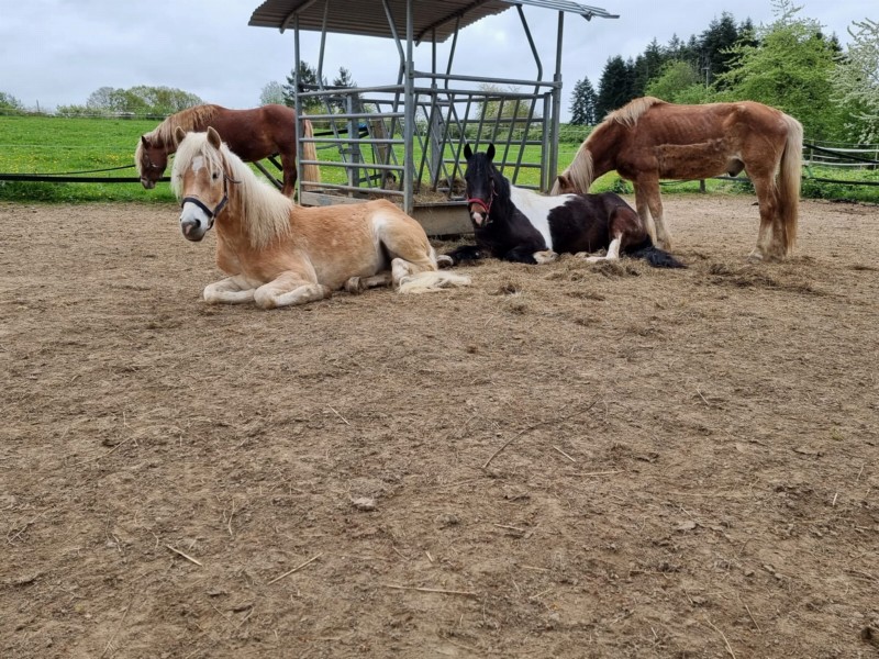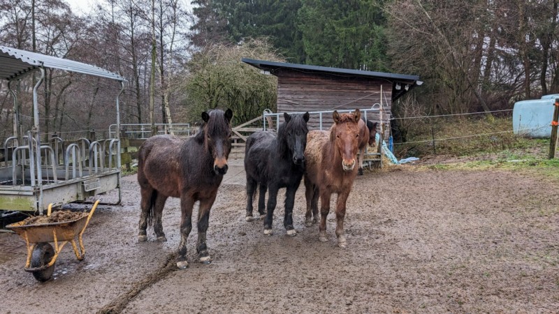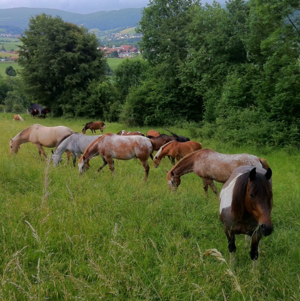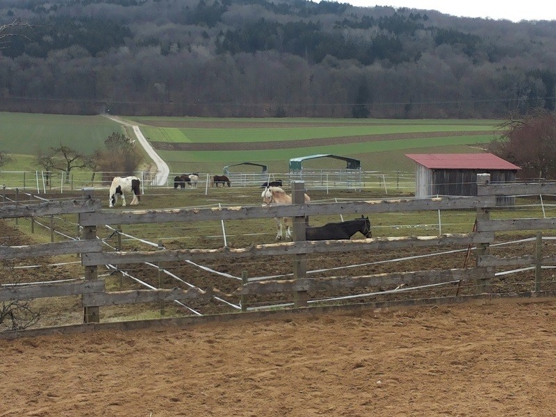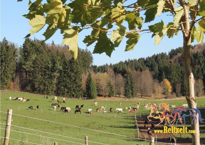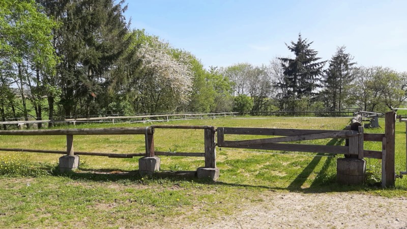 | Bäume, Bitte auf jeden Fall an die Reitverbote halten! Bitte Mist im Wald entsorgen! genügend | Sitzgelegenheiten im Freien, direkte Sicht zu den Pferden |