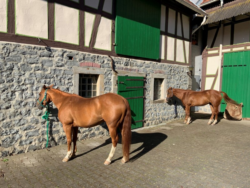 | Box Heu, Stroh, Futter inklusiv Plätze: 3 Preis pro Pferd: 25 Esel und Mulis willkommen | Direkt am Hof: Bettwäsche vorhanden, Fewo, Heulager nach Absprache möglich 3-6 Preis pro Person: Ab 50€ |
