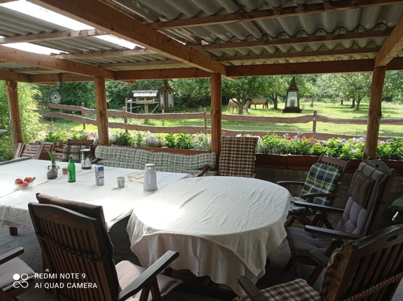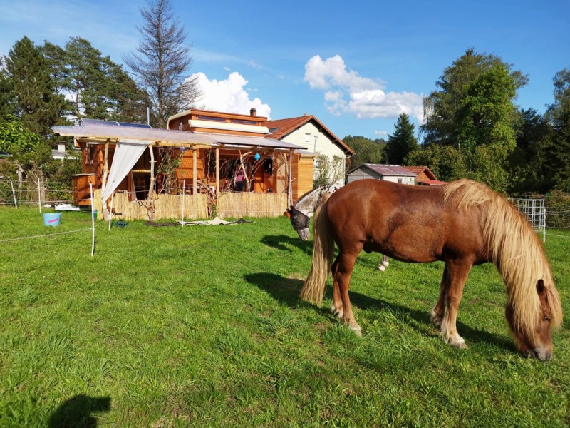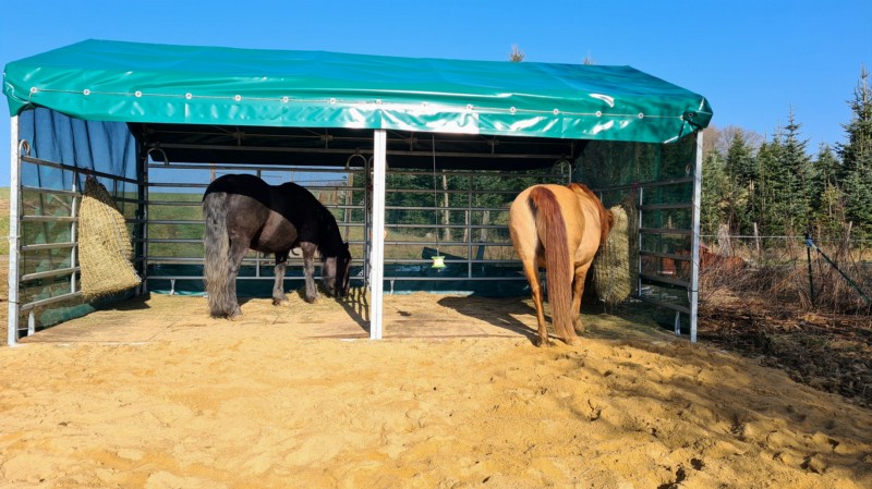 | Bäume Plätze: 4 | Sitzgelegenheiten unter Dach, direkte Sicht zu den Pferden |