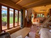 | Sitzgelegenheiten unter Dach, direkte Sicht zu den Pferden |