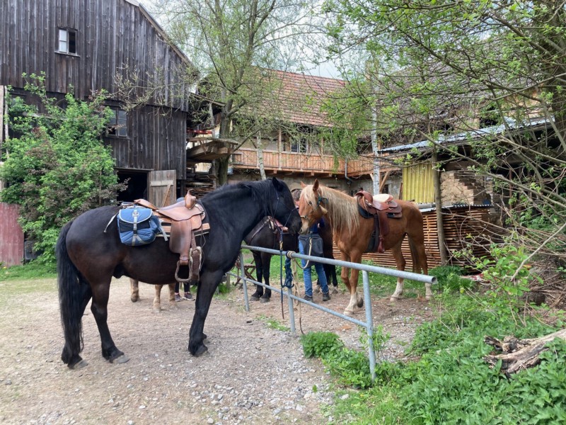 | Box, Paddock Heu, Stroh, Gras, Muesli, Futter inklusiv Plätze: 8 Preis pro Pferd: 20 Esel und Mulis willkommen | Direkt am Hof: Bettwäsche vorhanden, DZ, Fewo, Matratzenlager, Zelt, Heulager Voll Möblierte Küche, Lagerfeuer, Grillplatz Plätze: 8 Preis pro Person: 45 Unterbringung im Ort Abendessen, Brotzeit, Frühstück, Vegetarisch |