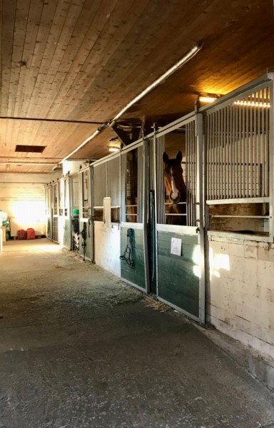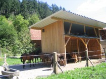 | Anbindemöglichkeit (Balken, Ringe) Mistwerkzeug vorhanden, Wassereimer vorhanden Plätze: 2 | Sitzgelegenheiten im Freien, direkte Sicht zu den Pferden, WC |