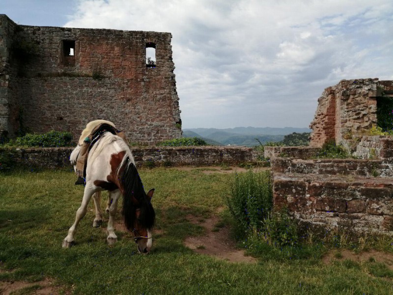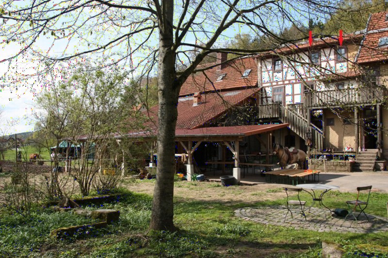 | Koppel Heu, Gras, Hafer, Futter inklusiv Plätze: 12 Preis pro Pferd: 10 Esel und Mulis willkommen | Direkt am Hof: Bettwäsche vorhanden, DZ, Fewo Plätze: 12 Preis pro Person: 45 Burgrestaurant Rudelsburg |