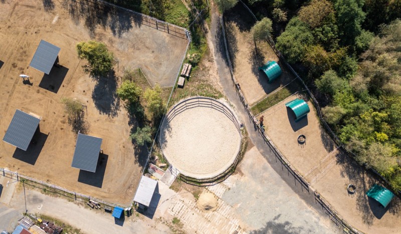 | Bäume | Sitzgelegenheiten im Freien, Sitzgelegenheiten unter Dach, direkte Sicht zu den Pferden |