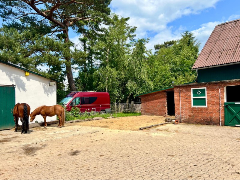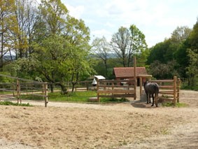 | Paddock, Paddock (Sand) mit Unterstand Heu, Hafer Plätze: 2 Preis pro Pferd: 20 Euro Esel und Mulis willkommen | Direkt am Hof: eigener Schlafsack, DZ, Fewo Plätze: 2 15 Euro |