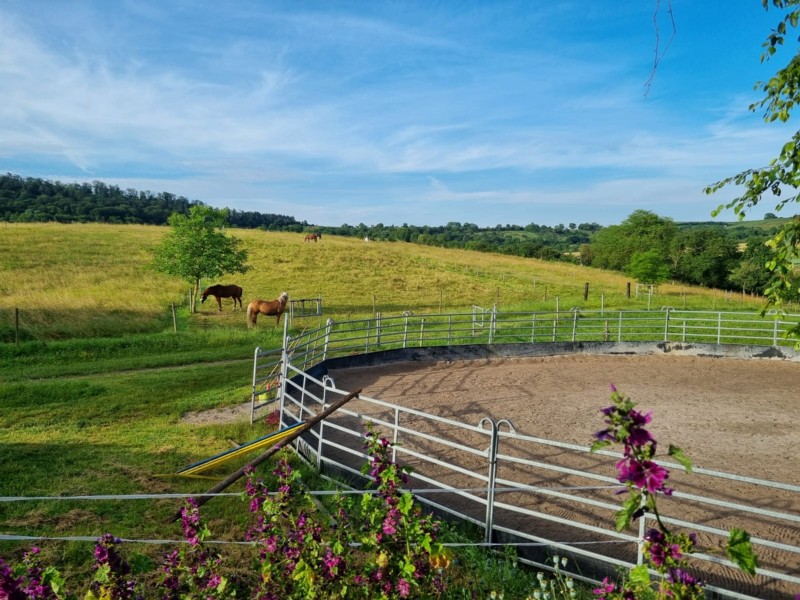| Paddock, Koppel, Grasfreie Übernachtung im Roundpen möglich Heu, Gras, Hafer, Futter inklusiv Plätze: 6 Preis pro Pferd: 15 | Direkt am Hof: Bettwäsche vorhanden, DZ, Fewo, Zelt Abendessen, Brotzeit, Frühstück, Lunchpaket, vegetarisch möglich, Getränke Plätze: 6 Preis pro Person: 50 Freitags Pizza im Nachbarort |