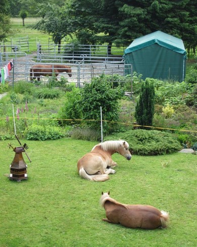 | Bäume Bitte Mist in den Wald ;) genügend | Sitzgelegenheiten im Freien, direkte Sicht zu den Pferden |