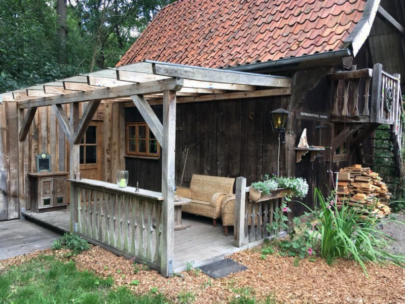 Pferde können an den Stützpfeilern angebunden werden Plätze: 4 | Sitzgelegenheiten unter Dach, direkte Sicht zu den Pferden, Trockene Aufbewahrung für Sattel/Gepäck |
