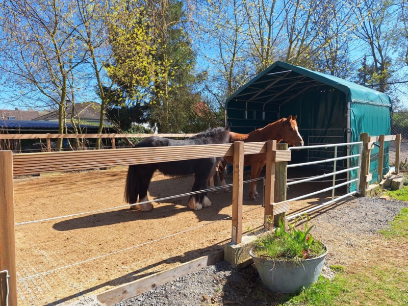 | Paddock, Koppel, Koppel mit Unterstand Heu, Stroh, Gras | Direkt am Hof: Bettwäsche vorhanden, Fewo, Zelt, Tiny Haus Plätze: 10 |