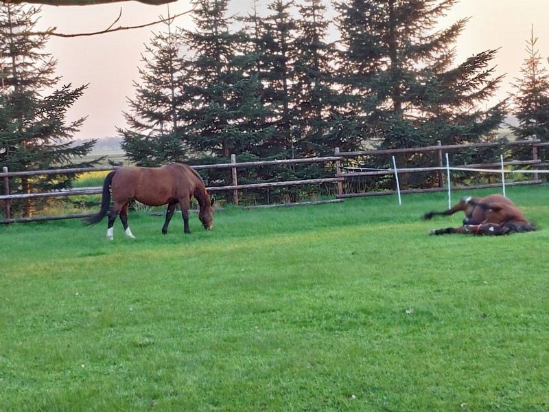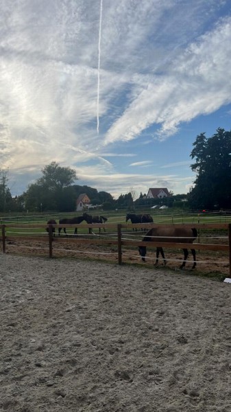 | Koppel, Koppel mit Unterstand Heu, Gras, Hafer wird extra berechnet 6-8 Preis pro Pferd: 15 € | Direkt am Hof: Bettwäsche vorhanden, DZ, Fewo Frühstück, gefüllter Kühlschrank kann bestellt werden Plätze: 10 Preis pro Person: 30 € mit voll eingerichteten Küchen |