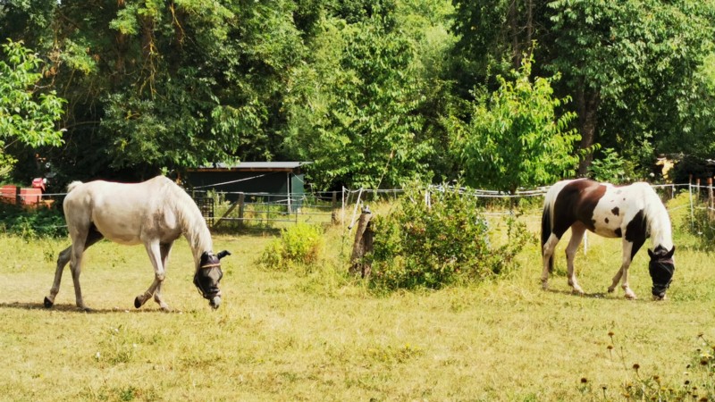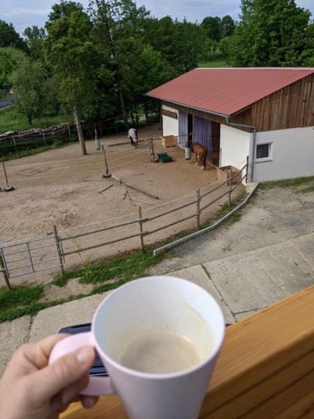| Bäume | Sitzgelegenheiten im Freien, direkte Sicht zu den Pferden |