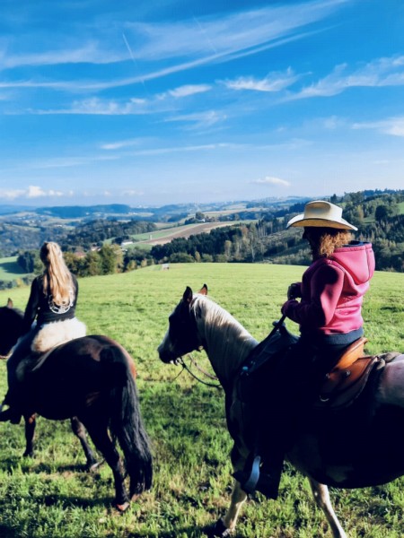 | Box, Paddock Heu, Futter inklusiv, Grascobs Plätze: 2 Preis pro Pferd: 12 | Direkt am Hof: Bettwäsche vorhanden, eigener Schlafsack, Zelt, Tinyhouse mit Doppelbett Brotzeit, Frühstück, Lunchpaket, vegetarisch möglich, Getränke, Verpflegung nach Absprache bei Anfrage Plätze: 2 nach Absprache |