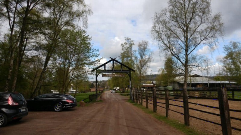 | Bäume | Sitzgelegenheiten unter Dach, direkte Sicht zu den Pferden |