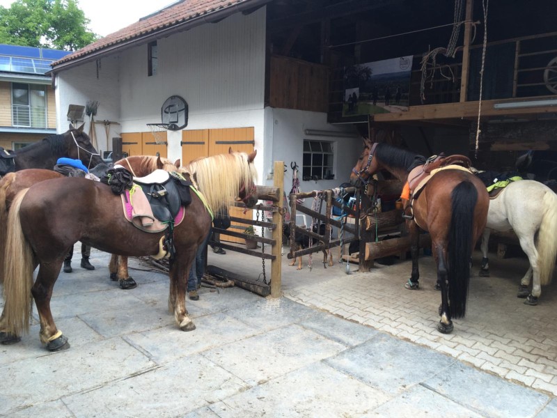 | Anbindemöglichkeit (Balken, Ringe) Mistwerkzeug vorhanden, Wassereimer vorhanden | Sitzgelegenheiten im Freien, Sitzgelegenheiten unter Dach, Trockene Aufbewahrung für Sattel/Gepäck Brotzeit/Snacks, vegetarisch, Getränke |