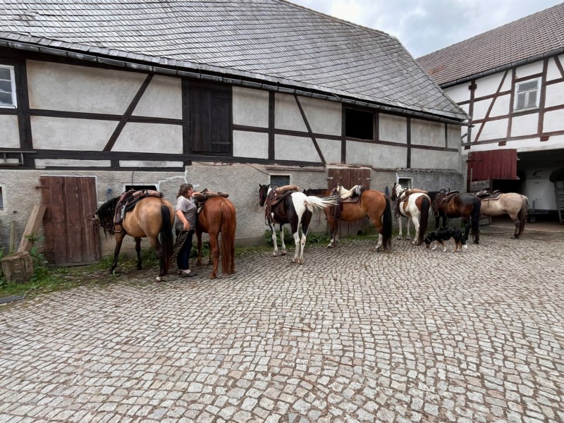 | Paddock, Koppel Heu, Gras, Hafer, Muesli, Futter inklusiv max. 10 in Pauschale enth. | Direkt am Hof: Bettwäsche vorhanden, eigener Schlafsack, DZ, Gruppenschlafraum, Matratzenlager, Zelt Abendessen, Frühstück, Lunchpaket, vegetarisch möglich, Getränke, kein Vegan max 10 Pauschal 70 € ohne Getränke |
