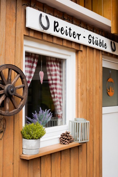 | Anbindemöglichkeit (Balken, Ringe), Koppel | Sitzgelegenheiten im Freien, Sitzgelegenheiten unter Dach, direkte Sicht zu den Pferden, Trockene Aufbewahrung für Sattel/Gepäck |