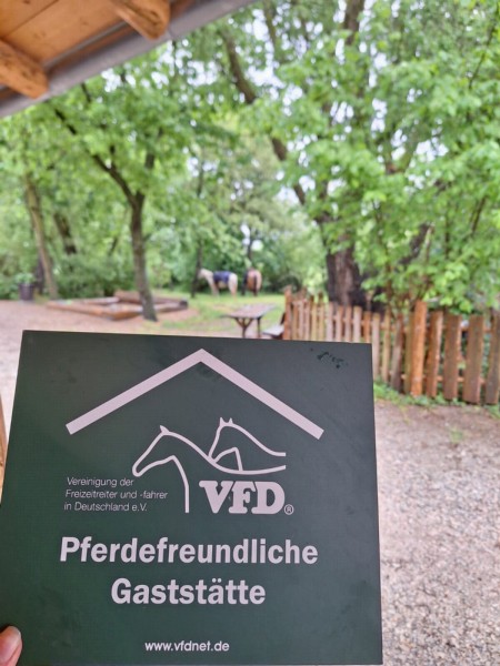 | Anbindemöglichkeit (Balken, Ringe), Bäume, Koppel Mistwerkzeug vorhanden, Wassereimer vorhanden | Sitzgelegenheiten im Freien, Sitzgelegenheiten unter Dach, direkte Sicht zu den Pferden, Trockene Aufbewahrung für Sattel/Gepäck Mittagstisch/Warme Küche, Brotzeit/Snacks, vegetarisch, vegan, Café, Kuchen, Eis, Getränke |