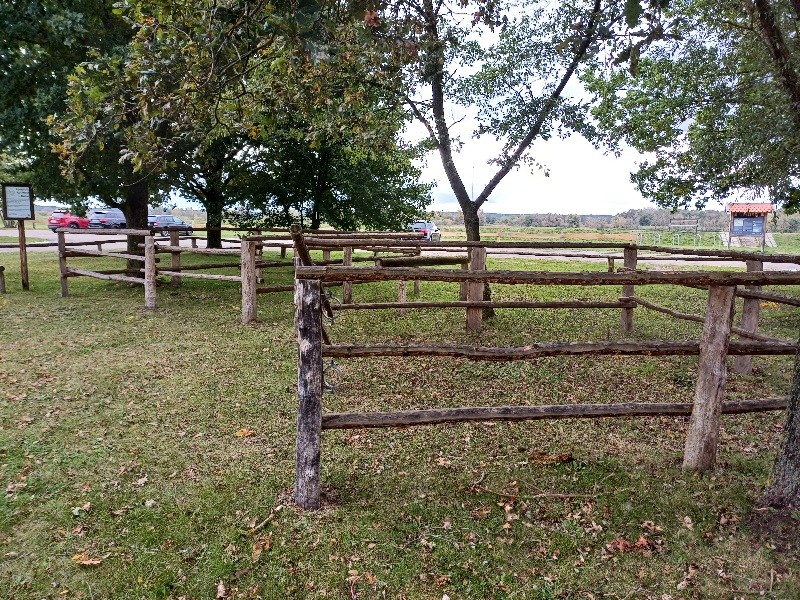 | Anbindemöglichkeit (Balken, Ringe), Stabile Pfosten der Schutzhütte ggf. Parkmöglichkeit mit Pferdeanhänger | Sitzgelegenheiten unter Dach, direkte Sicht zu den Pferden |