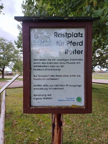 | Box, Paddock, Koppel, Koppel mit Unterstand Heu, Futter inklusiv Plätze: 2 Preis pro Pferd: Spende Esel und Mulis willkommen | Direkt am Hof: eigener Schlafsack, DZ, Gruppenschlafraum, Matratzenlager, Zelt Abendessen, Brotzeit, Frühstück, Lunchpaket, Getränke, Pizza Lieferservice von Salzwedel Plätze: 2 Preis pro Person: Spende |