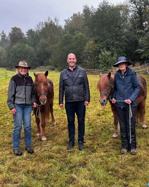 | Anbindemöglichkeit (Balken, Ringe) | Sitzgelegenheiten im Freien, Sitzgelegenheiten unter Dach, direkte Sicht zu den Pferden Café, Kuchen, Getränke |