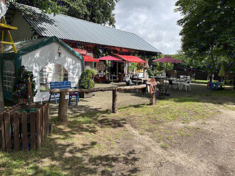 | Anbindemöglichkeit (Balken, Ringe), Bäume Plätze: 6 | Sitzgelegenheiten im Freien, direkte Sicht zu den Pferden Mittagstisch/Warme Küche, Café, Kuchen, Eis, Getränke |