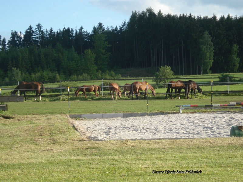 | Box, Paddock, Koppel, Koppel mit Unterstand Heu, Stroh, Gras, Hafer, nach Vereinbarung bis 8 nach Vereinbarung | Direkt am Hof: Bettwäsche vorhanden, DZ, Fewo Abendessen, Brotzeit, Frühstück, Lunchpaket, vegetarisch möglich, Getränke, nach Vereinbarung bis 8 Personen ab 35 Euro |