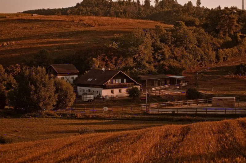 | Box, Paddock, Koppel Heu, Stroh, Gras, Hafer, Muesli Plätze: 30 | Direkt am Hof: Bettwäsche vorhanden, eigener Schlafsack, EZ, DZ, Fewo, Heulager Brotzeit, Frühstück |