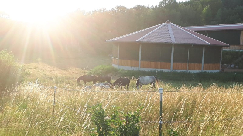 | Box, Paddock Heu, Stroh, Gras, Muesli, Futter inklusiv Plätze: 8 Preis pro Pferd: 20 Esel und Mulis willkommen | Direkt am Hof: Bettwäsche vorhanden, DZ, Fewo, Matratzenlager, Zelt, Heulager Voll Möblierte Küche, Lagerfeuer, Grillplatz Plätze: 8 Preis pro Person: 45 Unterbringung im Ort Abendessen, Brotzeit, Frühstück, Vegetarisch |