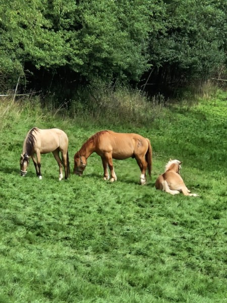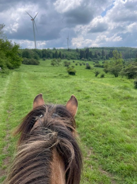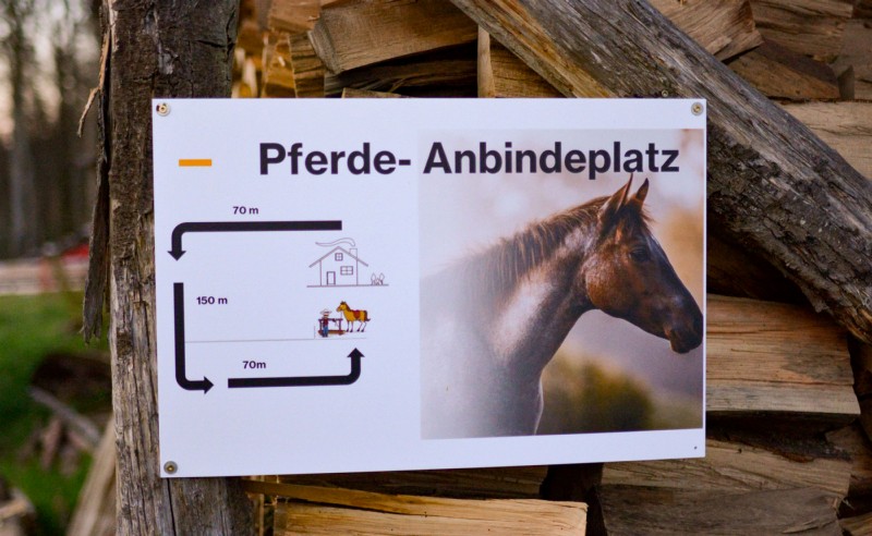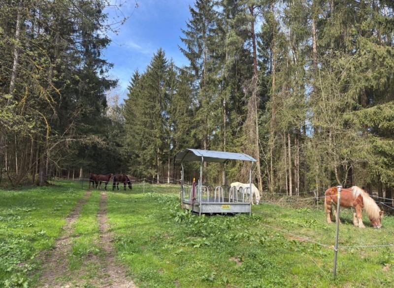 | Bäume, Bitte auf jeden Fall an die Reitverbote halten! Bitte Mist im Wald entsorgen! genügend | Sitzgelegenheiten im Freien, direkte Sicht zu den Pferden |