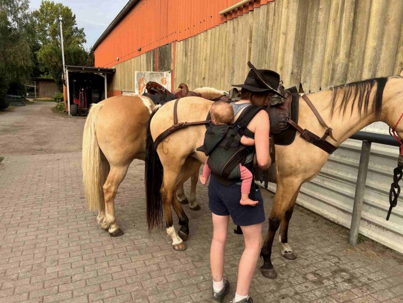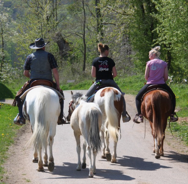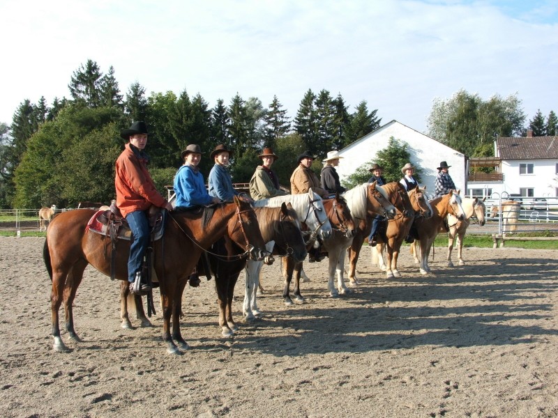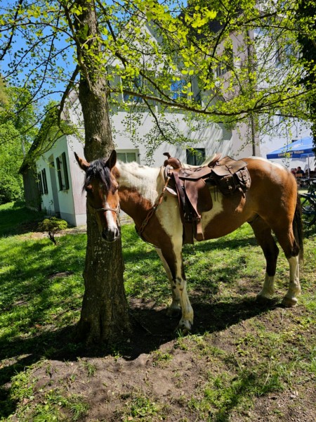 | Paddock, Koppel, Grasfreie Übernachtung im Roundpen möglich Heu, Gras, Hafer, Futter inklusiv Plätze: 6 Preis pro Pferd: 15 | Direkt am Hof: Bettwäsche vorhanden, DZ, Fewo, Zelt Abendessen, Brotzeit, Frühstück, Lunchpaket, vegetarisch möglich, Getränke Plätze: 6 Preis pro Person: 50 Freitags Pizza im Nachbarort |