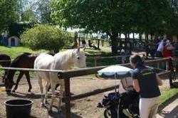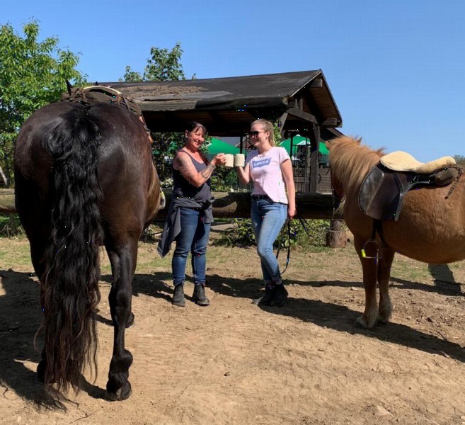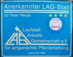 | Anbindemöglichkeit (Balken, Ringe), Boxen/Einzelpaddocks Mistwerkzeug vorhanden, Wassereimer vorhanden | Sitzgelegenheiten im Freien, Sitzgelegenheiten unter Dach, direkte Sicht zu den Pferden Café, Kuchen, Eis, Getränke |