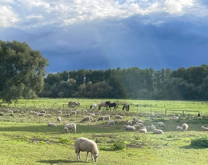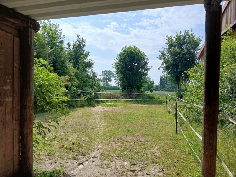 | Bäume, Wiese zum selbst Einzäunen Plätze: 10 | Sitzgelegenheiten im Freien, direkte Sicht zu den Pferden |
