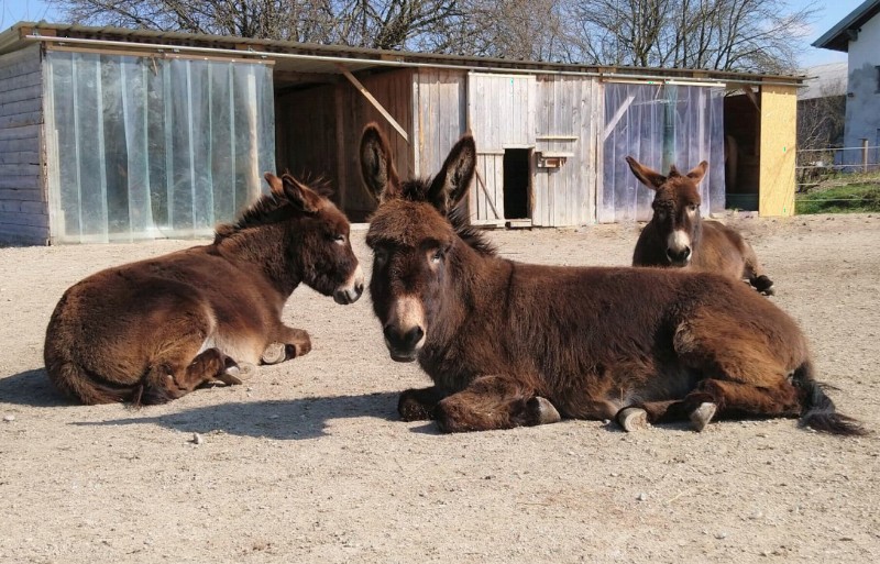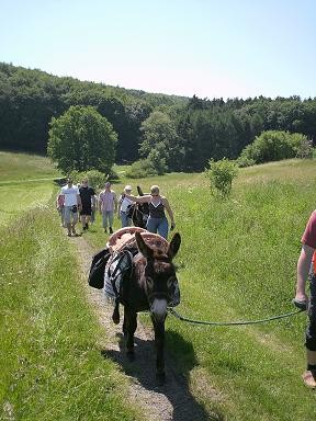 | Paddock, Koppel, Je nach Verträglichkeit der Pferde Heu, Gras 3-6 Esel und Mulis willkommen | Direkt am Hof: Bettwäsche vorhanden, eigener Schlafsack, Gruppenschlafraum, Zelt, Heulager, Bauwagen Frühstück auf Anfrage Unterbringung im Ort, außerhalb, Ferienwohnungen Abendessen, Brotzeit, Gaststätte 100 m |