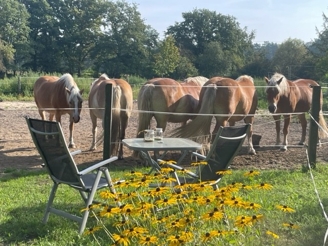 | Bäume | Sitzgelegenheiten im Freien, direkte Sicht zu den Pferden |