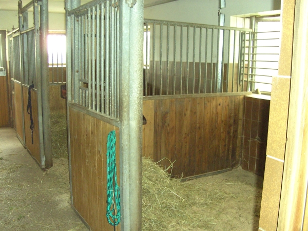 | Anbindemöglichkeit (Balken, Ringe) Mistwerkzeug vorhanden, Wassereimer vorhanden Plätze: 2 | Sitzgelegenheiten im Freien, direkte Sicht zu den Pferden, WC |