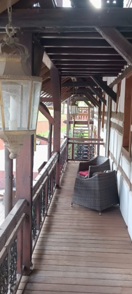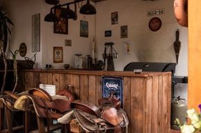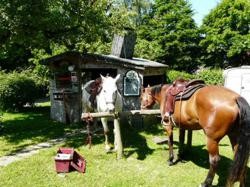 | Pferde können an den Stützpfeilern angebunden werden Plätze: 4 | Sitzgelegenheiten unter Dach, direkte Sicht zu den Pferden, Trockene Aufbewahrung für Sattel/Gepäck |