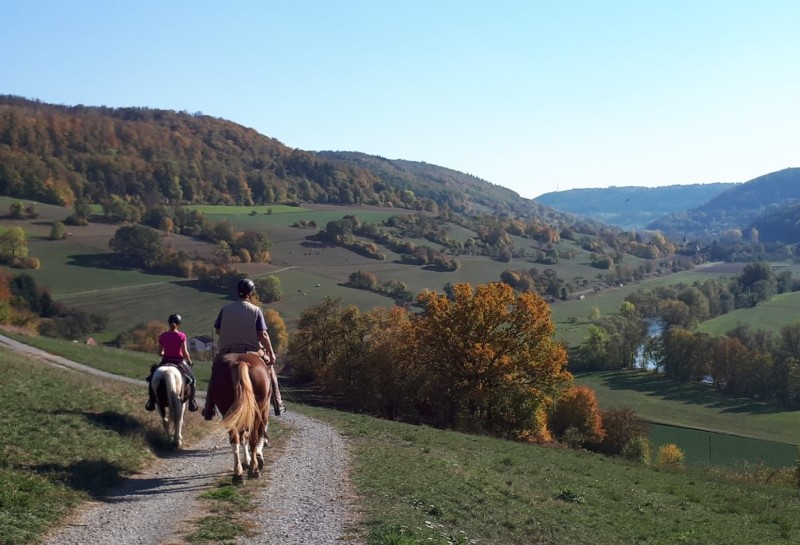 | Koppel Heu, Gras, Hafer, Futter inklusiv Plätze: 12 Preis pro Pferd: 10 Esel und Mulis willkommen | Direkt am Hof: Bettwäsche vorhanden, DZ, Fewo Plätze: 12 Preis pro Person: 45 Burgrestaurant Rudelsburg |