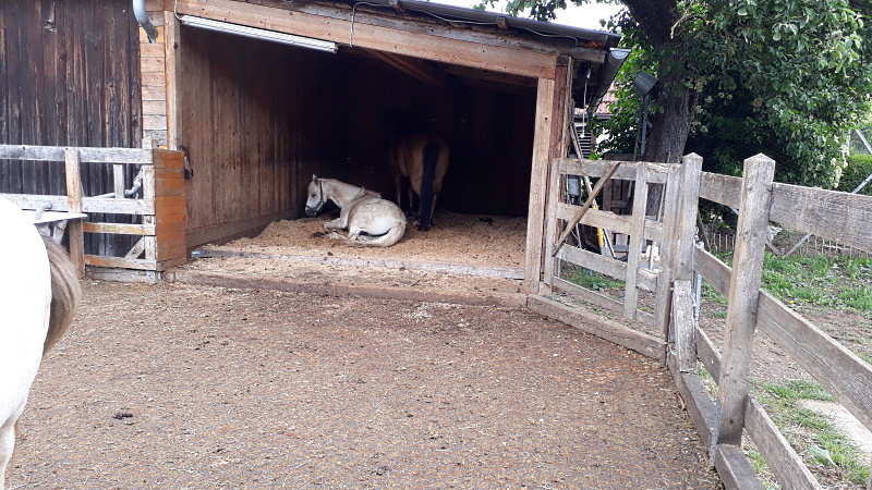 | Box, Koppel mit Unterstand Heu, Gras, Hafer Plätze: 2 Preis pro Pferd: 15 | Direkt am Hof: Bettwäsche vorhanden, eigener Schlafsack, Fewo, Zelt, Heulager Plätze: 2 Preis pro Person: 50 Unterbringung im Ort, außerhalb, Fussmarsch Abendessen, Brotzeit, Frühstück |