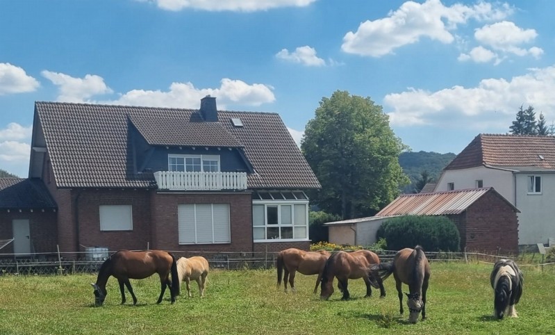 | Box, Paddock, Koppel Heu, Gras Plätze: 12 Auf Anfrage Esel und Mulis willkommen | Direkt am Hof: Bettwäsche vorhanden, eigener Schlafsack, EZ, DZ, Fewo, Matratzenlager, Zelt, Die Preise für Wanderreiter bitte erfragen Brötchenservice möglich 2 Ferienwohnungen, 1 Hexenhaus Ferienwohnung 90,00 € (2 Personen inkl.) Hofladen in der Nähe |