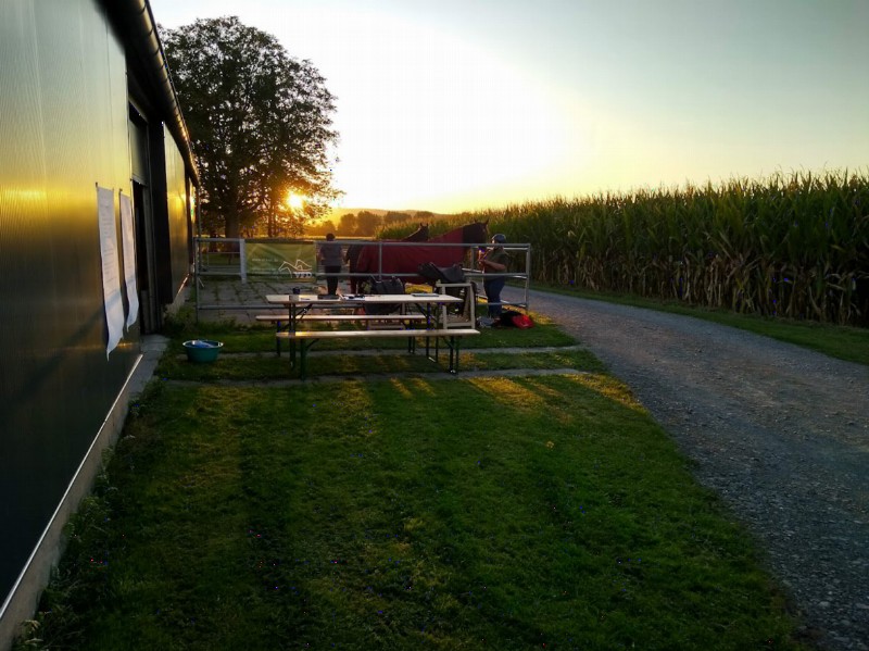 | Box, Paddock Heu, Gras, Muesli, Futter inklusiv, Gerste 1x Box, 4x Paddock | Direkt am Hof: Bettwäsche vorhanden, eigener Schlafsack, DZ, Zelt, Heulager, Pferdeanhänger Abendessen, Frühstück, Lunchpaket, vegetarisch möglich, Getränke, Grillmöglichkeit 1x im Zimmer, 2x im Pferdeanhänger oder Zelte mitbringen Einkaufsmöglichkeiten Restaurants in fußläufiger Nähe |