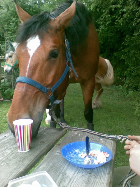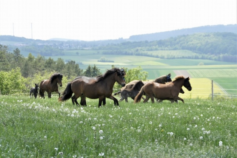 | Bäume, 3 dicke Bäume, ggf. Hochseil mitbringen, kann zwischen den Bäumen gespannt werde Falteimer mitbringen, Fluss direkt daneben, Mistschaufel selbst mitbringen ab 3 | Sitzgelegenheiten im Freien, direkte Sicht zu den Pferden, In der Wiese direkt neben den Pferden Brotzeit/Snacks, Café, Kuchen, Eis, Getränke |