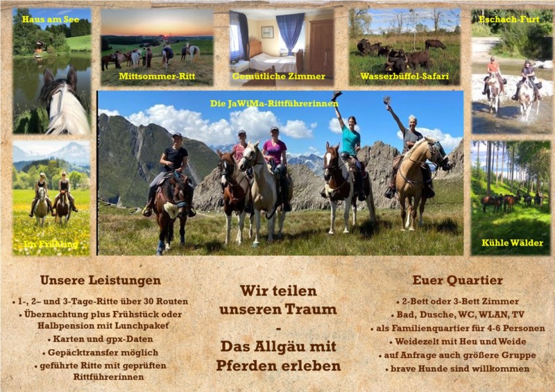 | Paddock, Koppel Heu, Stroh, Gras, Hafer, Muesli, Futter inklusiv 20 Plätze | Direkt am Hof: eigener Schlafsack, Fewo, Matratzenlager, Blockhaus, Tipi Abendessen, Frühstück, Lunchpaket, Getränke 20 Plätze Station 35 IG WR Schwaben |