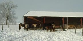 | Anbindemöglichkeit (Balken, Ringe), Bäume Mistwerkzeug vorhanden, Wassereimer vorhanden | Sitzgelegenheiten im Freien Eis |