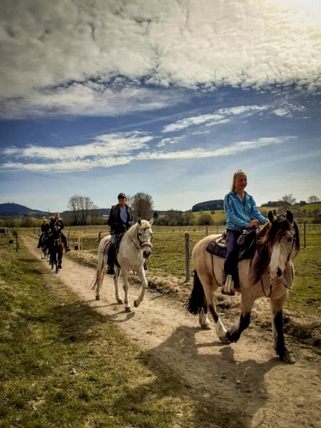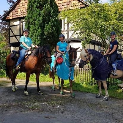 | Paddock Heu, Stroh, Gras, Hafer, Muesli, Futter inklusiv Plätze: 4 Preis pro Pferd: 10 | Direkt am Hof: Bettwäsche vorhanden, Wohnwagen, 2 Einzelbetten Frühstück, Lunchpaket, vegetarisch möglich, Getränke, Abends Pizzataxi oder Grillen möglich Plätze: 2 Preis pro Person: 30 Unterbringung im Ort, Für größere Gruppen ist eine Übernachtung im „Haus am Sengelsberg“ möglich |