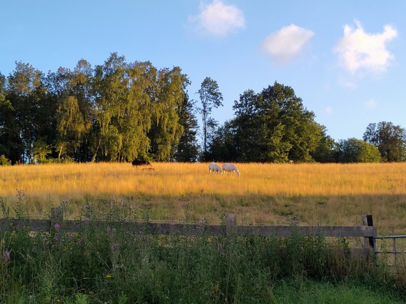 | Paddock, Koppel mit Unterstand Heu, Gras, Hafer, Muesli, Futter inklusiv 6-8 Preis pro Pferd: 18 | Direkt am Hof: Bettwäsche vorhanden, DZ, Fewo Abendessen, Frühstück, Lunchpaket, vegetarisch möglich, Getränke Plätze: 6 Preis pro Person: 70 Unterbringung außerhalb, Transferservice, Fussmarsch Abendessen |