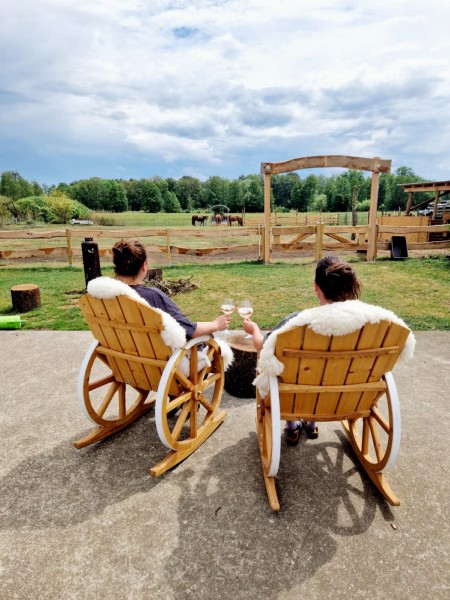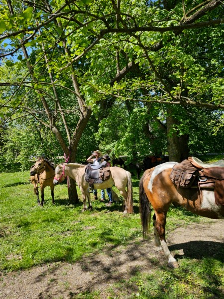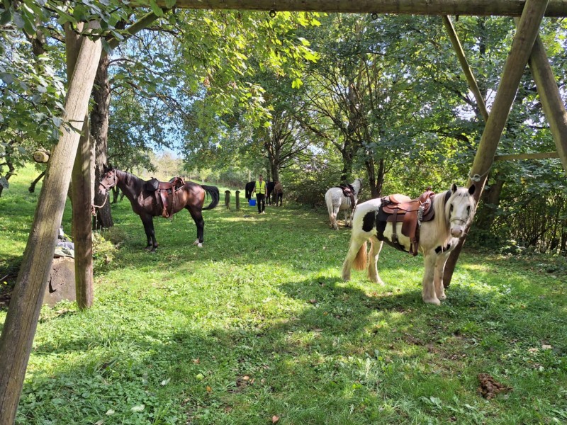 | Bäume Plätze: 4 | Sitzgelegenheiten unter Dach, direkte Sicht zu den Pferden |