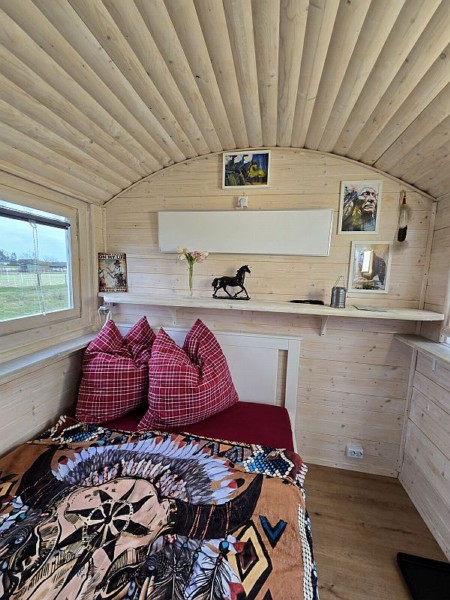 | Koppel mit Unterstand Heu, Gras, Hafer, Futter inklusiv, Salzleckstein 1-6 Preis pro Pferd: 15 | Direkt am Hof: Bettwäsche vorhanden, eigener Schlafsack, Tinyhouse und Schäferwagen Frühstück, vegetarisch möglich, Getränke, alles nach vorheriger Vereinbarung 1-6 ca. 30 Euro Unterbringung außerhalb, alles sehr individuell gestaltbar Nachbarort |