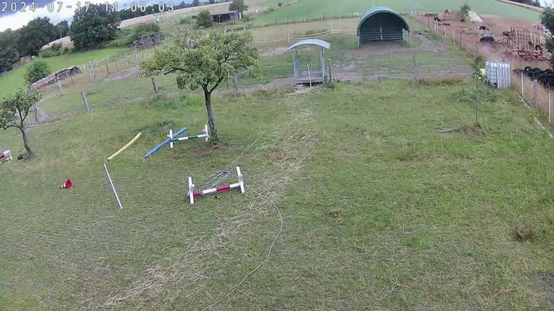 | Bäume | Sitzgelegenheiten unter Dach, direkte Sicht zu den Pferden |